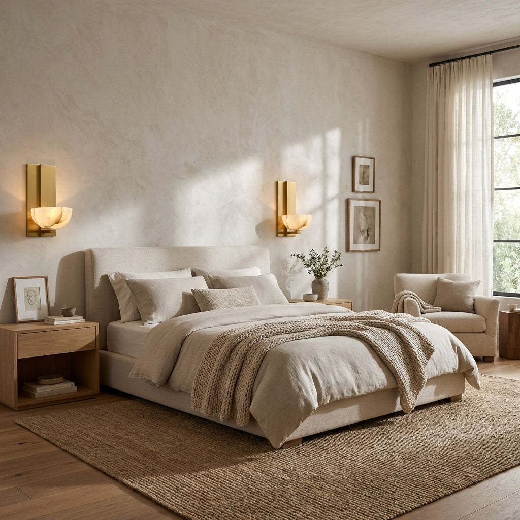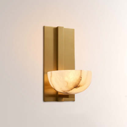 Briar Alabaster Bowl Wall Sconce with Brass Backplate